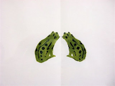 Come ti pare e piace. Quello che pensi andrà benissimo. Goditi questa mostra nello spazio unosolo_project con leggerezza. La mostra è carina,   piccina,   minuta,   allegra e colorata quanto basta. Protagonista è  ‘La Chat Grenouille’,   la gatto-rana (io aggiungerei anche un pò cocomero). Un serie di artisti ne hanno dato una loro personalissima interpretazione. Piccoli acquerelli,   piccoli quadretti,   piccoli bom bom a forma di orsetto sommersi dentro a dei bicchieri d’acqua. Un ritaglio di pagina di libri: ci vedo una faccia,   ci vedo un’astronave,   no,   forse un abitino. Vezzeggiativi a parte (di cui ho consapevolmente abusato),   la mostra è graziosa come un doposcuola,   nelle ore ricreative. Buffa l’atmosfera,   piacevole la vista dei delicati disegni che immortalano lei,   l’ossessione di  Raimundas Malasauskas,   la gatto-rana. Nel complesso la mostra,   la piccola mostra,   è curiosa e interessante. E’ piacevole perchè,   per volere dello stesso curatore,   ogni lavoro è aperto a qualsiasi tipo di percezione. Il pericolo è che paperelle,   zucche,   orsetti ecc. vengano percepiti ‘proprio’ come tali: piccoli animaletti simpatici e buffi. Gli unici lavori,   note noire,   della mostra le doppie fotografie di Alexandre Guikinger,   ‘Portrait di Raimundas Malasauskas’ e le macchie di Pierre Bismuth che prendono alla lettera  il metodo della psicodiagnostica basato sulla lettura e interpretazione delle macchie d’inchiostro (venne sviluppato dallo psichiatra svizzero Hermann Rorschach nel 1921). Nelle sue macchie ho intravisto le orme di un uomo caduto in mezzo alla neve!
