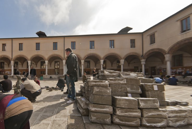 Guidati da Urs Fischer, gli studenti dell’Accademia di Venezia hanno plasmato in argilla gatti, gattini, mostriciattoli, lettiere, zampe, topi, esseri più o meno vertebrati per l’intera giornata di giovedì 12. Cornice di questo laboratorio a cielo aperto, il cortile dell’Accademia di Belle Arti di Venezia (Sede centrale – Dorsoduro 423). Le foto che ho pubblicato mi sono state segnalate dalla stessa Accademia e ne potetet vedere delle altre in questo sito .