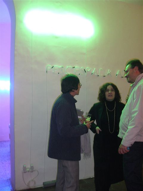 In galleria i due artisti hanno trasformato questo prelibato menù in delle scritte al neon, che si accendevano e spegnevano a seconda della durata della consumazione. L’effetto è stato quello di trasformare la galleria in una sorta di piano bar immerso nella luce colorata ad intermittenza. Nel comunicato stampa si sottolinea che questo è un progetto sull’ospitalità e l’accoglienza: nelle cene non è tanto importante il cibo in sè, ma la condivisione, le discussioni che si fanno mangiando. Sarebbe stato interessante che, al posto del menù, Gordon e Monk avesse trascritto parti delle loro conversazioni, magari dopo una/due bottiglie di vino rosso!