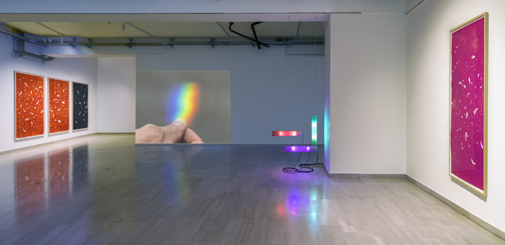 La prima personale dell’artista siciliano, La polvere ci mostra che la luce esiste, si costruisce per apparizioni. La polvere non è più solo materia, ma una condizione di visione con tutti i suoi limiti. È fondamentale non tanto ciò che si osserva, ma il modo in cui lo si fa. I fenomeni naturali restano liberi di generare immagini che si formano nella mente del visitatore, sfuggendo a una funzione unicamente informativa. Ognuno deve trovare il proprio senso sulle cose, per attraversare e non solo comprendere, come la natura stessa, che si lascia tentare, per un attimo, prima di scomparire.