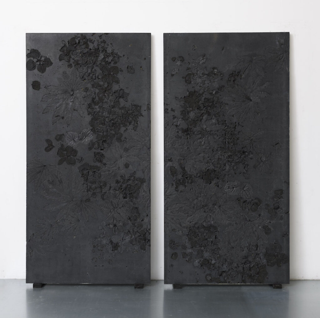 Così come il deterioramento, nella serie di lavori in cemento ispirati all’ikebana i materiali organici e transitori si fissano nel cemento o “marmo contemporaneo”. Il cemento contrasta il normale svolgersi del ciclo vitale, rallentandone la fine e perciò accentuandola ancor di più. Un ikebana fossilizzato che invece di celebrare il tempo lo incrina, lo rende permanente.