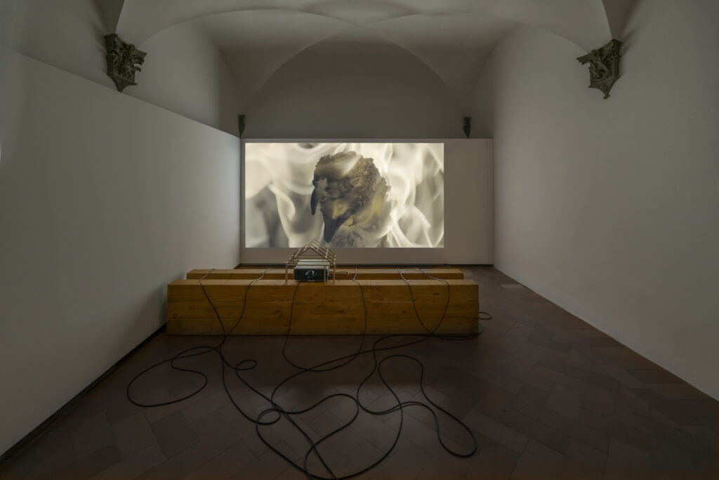 As a result, nothing here seeks univocal symbols or relies on pathos. Things—bones, fruit, fire, images—are treated as minimal structures that continue to exist even when body, function and narrative have fallen away. This precision shifts the human to the side. It does not erase it, but it removes its monopoly over meaning. Matter, here, is not the support of an idea; it is a force that persists, that endures, that proceeds through minute transformations.