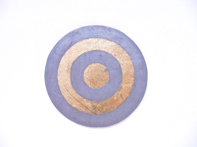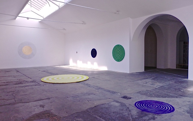 Sarleti che mi spiega che in realtà i riferimenti da poter fare in questa mostra sono tantissimi, così come è molto lunga la lista di tecniche utilizzate per reallizzare questi grandi e piccoli cerchi: acquerello, encausto, wall painting, pittura ad olio, affresco ecc.