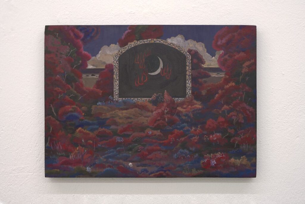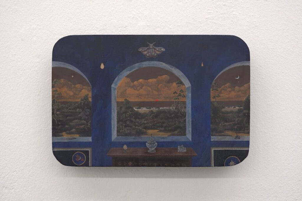 Bu Shi, Crepuscolo, 2025, tempera su tavola, 24 x 30 x 3 cm, courtesy CAR Gallery Bologna- ph. Manuel Montesano
