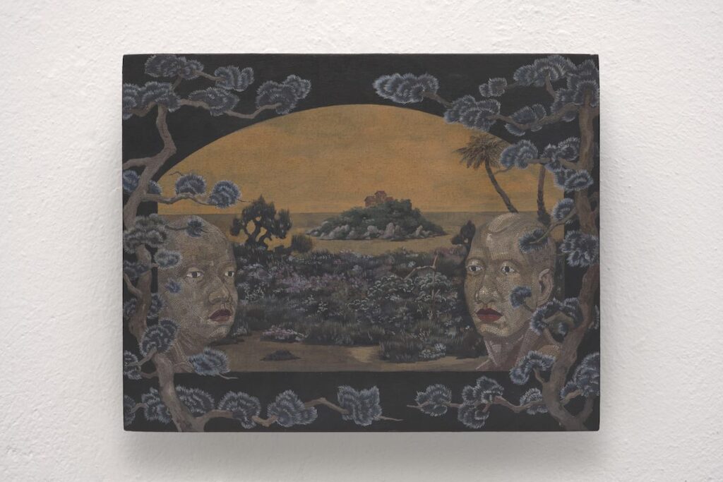Bu Shi, L’isola della morte, 2025, tempera su tavola, 19 x 24 x 3,5 cm, courtesy CAR Gallery Bologna – ph. Manuel Montesano