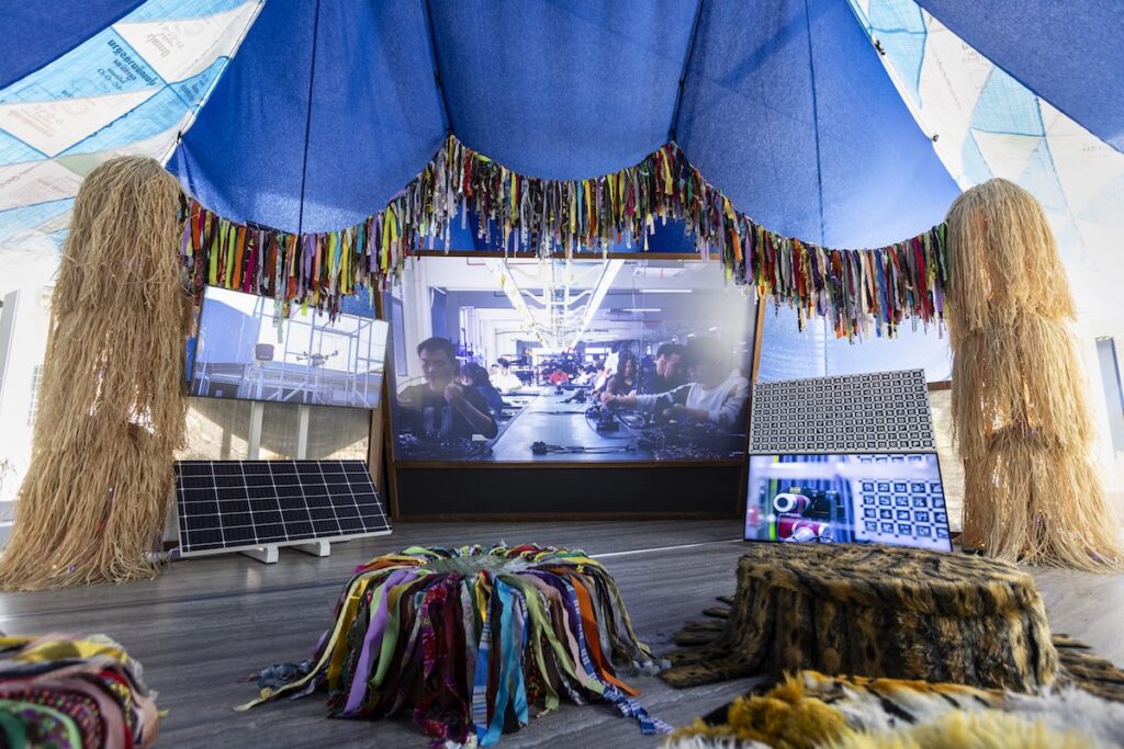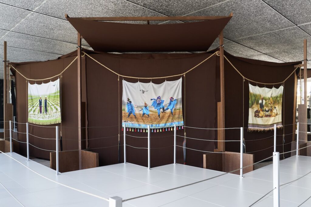 L’immagine apparentemente semplice e solenne di una tenda precariamente innalzata è forse il richiamo più archetipico legato tanto all’idea di abitare il tempo e un nido (di bachelardiana memoria), quanto a quella di impersonare, per piccoli tocchi di magia, gli anni dell’infanzia attraversati dal gioco di un essere libero e selvaggio, immerso nella prateria. Negli spazi estesi della Fondazione Prada di Milano l’artista Cao Fei (Canton, Cina, 1978) per mezzo di una tenda ha evocato il ricordo della terra e del raccolto nei campi aperti dell’Asia. Andando dall’influenza del riso, sino all’impiego nei campi e nel lavoro contadino delle nuove tecnologie, gli schermi impiantati al di sotto del tessuto tenda proiettano continuamente la restituzione documentaria e filmica legata all’indagine in loco condotta dall’artista.