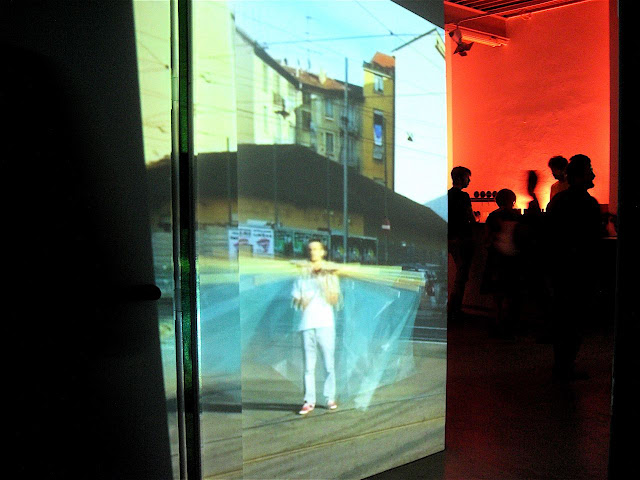 Me l’ero persa a Venezia, dunque, visto che le due curatrici Guia Cortassa e Barbara Meneghel hanno avuto la bella idea di portala a Milano, sono andata a ‘farmi coinvolgere’. BYOB (Bring Your Own Beamer) è il format di one-night-exhibitions creato da Rafaël Rozendaal a Berlino e in seguito riproposto da diversi curatori nel mondo. Il concetto che sta alla base (o meglio l’ambizione) è quella di allargare le potenzialità del ‘medium della proiezione’… come dire, fermarsi un pò prima o subito dopo lo schermo/monitor per portare l’onnipresenza di internet anche nello spazio.