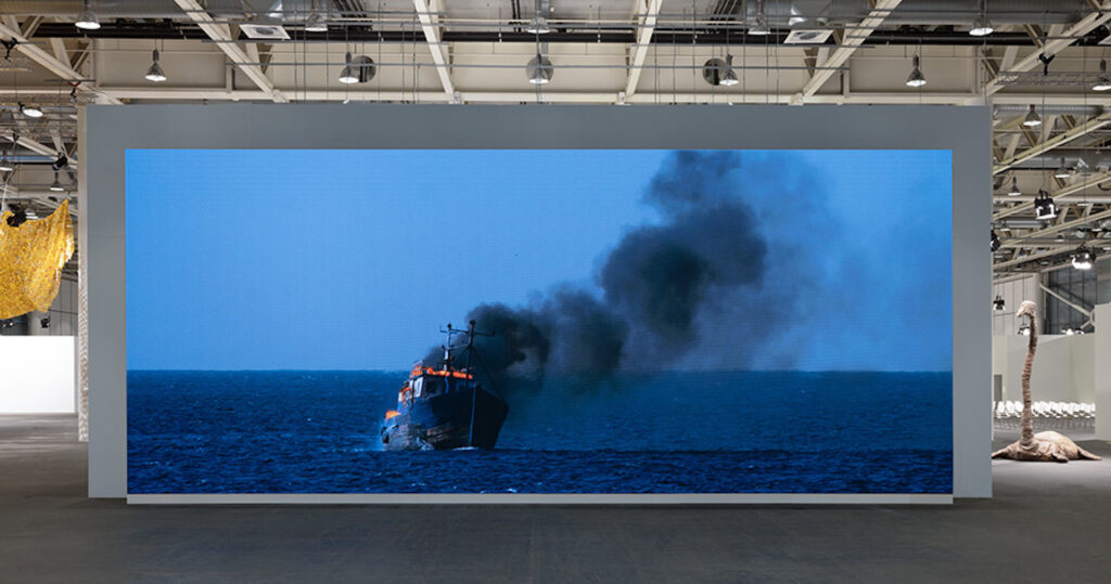L’artista lituano racconta con un cortometraggio e un diorama immersivo un distopico “tempo del fuoco” frutto della degenerazione delle crisi attuali e la “pirogenia” che lo abita.
