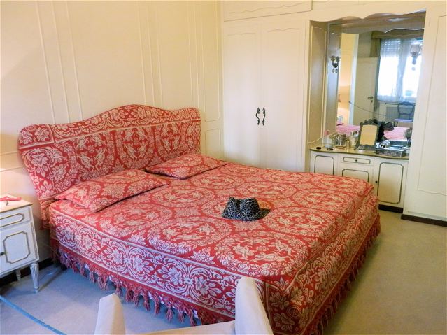 Al secondo piano, un’opera curiosa di Olaf Nicolai, ‘Lettera dallo studiolo’: una macchina da scrivere con fogli bianchi utilizzabili dai visitatori. Nella camera, sopra il letto matrimoniale, un capello leopardato in finta pelliccia di Nina Beier, ‘Dead Drop’.