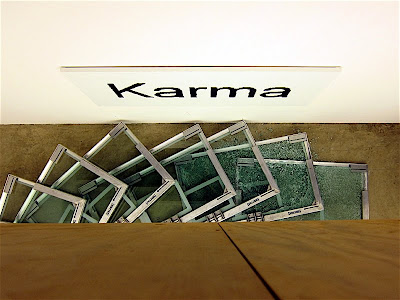 La personale Karma di Dan Colen è presentata come una mostra che “attraverso una produzione artistica variegata e multiforme, racconta la vita dell’artista e quella della sua generazione”. Legittimo ma inevitabilmente presuntuoso, no? Possibile che per descrivere dei g(g)iovani si deve sempre parlare di skate, cose recuperate in strada, sbando ecc.