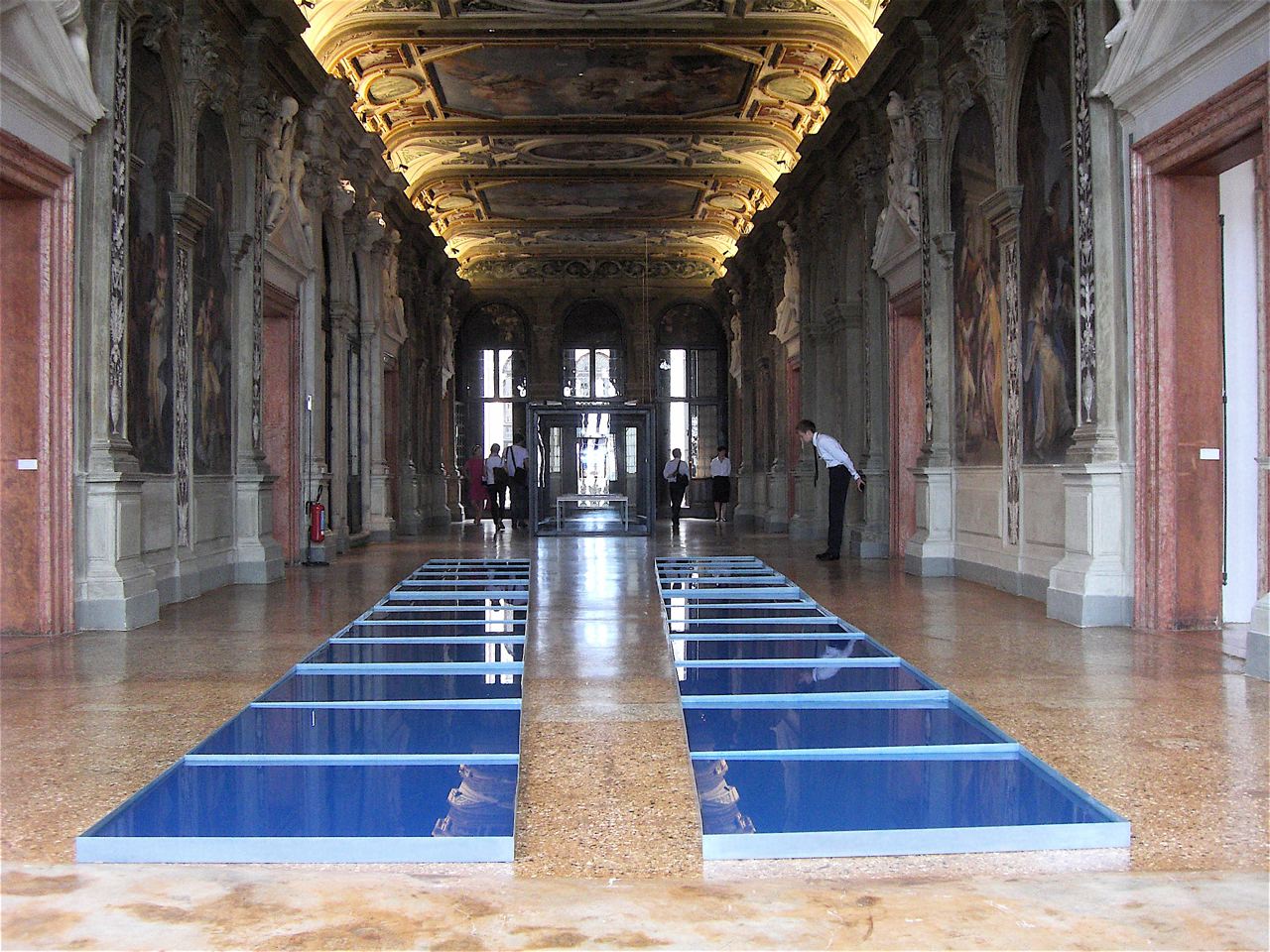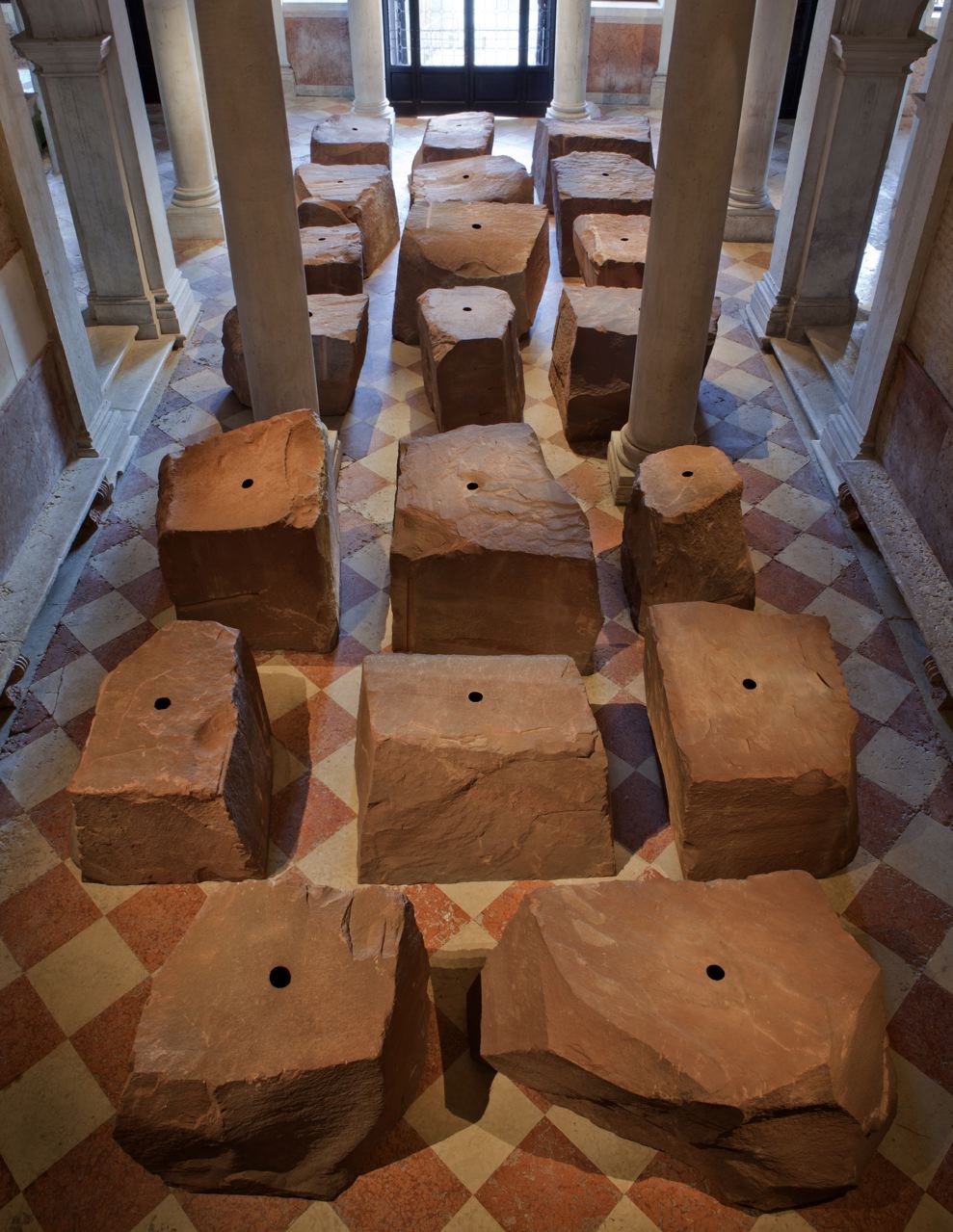Super spazio, perfetta ristrutturazione, grandi opere, buon ritmo, atmosfera rarefatta… all’insegna dei superlativi l’arrivo della Fondazione Prada in laguna. Dopo anni di mostre ospitate alla Fondazione Cini (isola di San Giorgio), la maison milanese trova finalmente una bellissima dimora per la sua collezione rieditata per l’occasione. Nonstante la tappa fosse da cerchiare nell’agenda durante i giorni della Biennale, in molti hanno snobbato l’appuntamento, optando per mete meno prevedibili e più di ‘ricerca’. Peccato, perchè la mostra è bellissima, perfettissima ecc. ecc. ma, in effetti, non riserva molte sorprese. Nulla toglie che una visita direi che è d’obbligo. Da fare magari durante l’estate, quando non c’è nessuno in giro. Le sale Scarpitta/Fontana/Manzoni tolgono il fiato: elegantissime. Cappelletta San Francesco Vezzoli… lascia un pò a desiderare…ma al massimo vi strappa un sorriso vedere il ‘fresco di santità’ ammiccare un bacino al mezzo busto al suo fianco. Potenti i massi di Anish Kapoor tra il colonnato del piano terra, così come le due installazioni di Damien Hirst ‘Waiting for Ispiration, Blue’ e ‘Waiting for Ispiration, Red’ al primo piano.