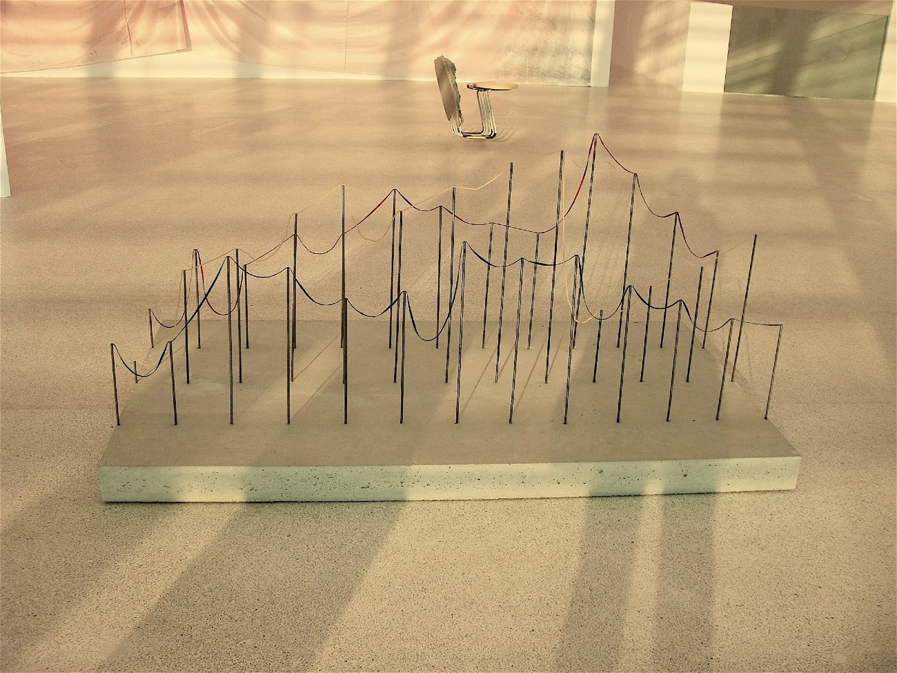 Arrivando nella grande sala, un grande spazio vuoto è stato lasciato libero, bianco. L’artista ha inteso creare uno spazio o membrana che unisce le due parti della città di Bolzano: la parte nuova e vecchia (parti visibili anche dalle enormi vetrate del museo)