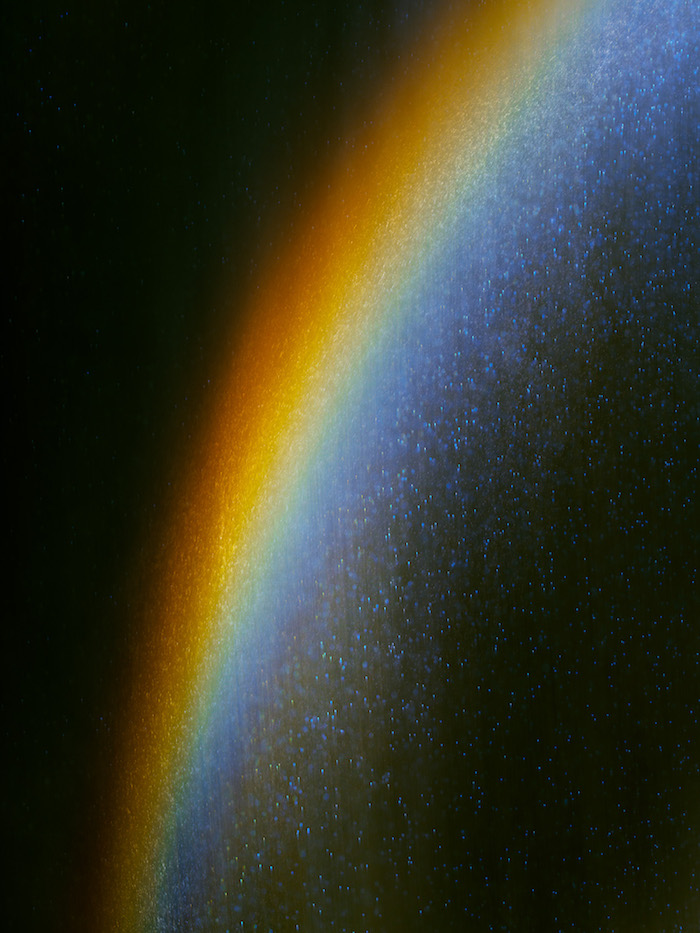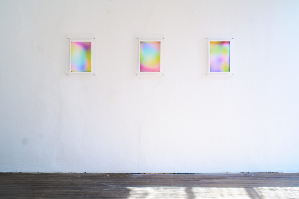 L’installazione ricrea un arcobaleno artificiale in un ambiente controllato. L’opera associa il fenomeno luminoso artificiale a tre fotografie che ritraggono i colori presenti in un sensore digitale. L’associazione tra il colore e la tecnologia mette in luce come il fenomeno naturale venga scomposto, ricodificato e trasformato per essere adattato all’era della comunicazione pervasiva. Il lavoro di Colombo, con la sua precisione formale e il suo rigore concettuale, indaga la natura della speranza nell’epoca contemporanea: un concetto che, svuotato della sua essenza, rischia di diventare un semplice prodotto, ingegnerizzato per soddisfare un bisogno di rassicurazione in un mondo sempre più incerto.