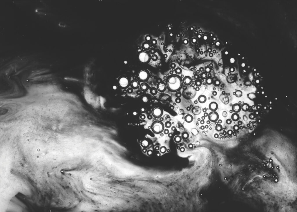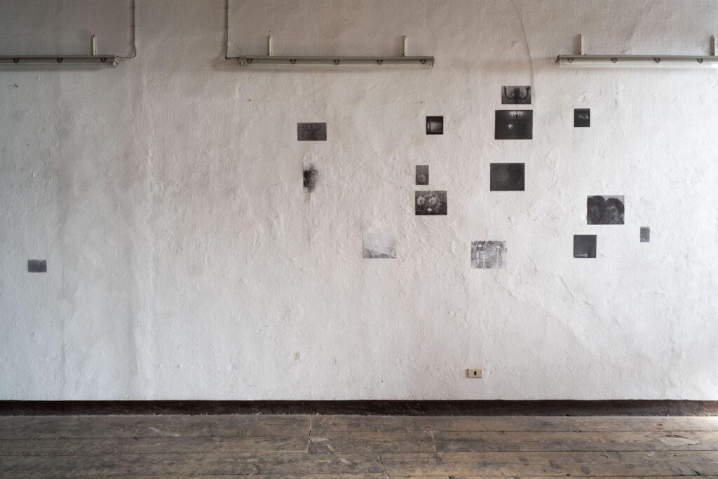 L’artista crea matrici temporanee e fugaci, a volte con materiali durevoli come lastre in metallo, altre con elementi volatili come bolle d’aria. L’avvicinamento a queste forme elementari gli consente di osservare l’unità germinale della visione, al di là dell’oggetto nel suo insieme. L’immagine viene quindi impressa su carta fotosensibile, un supporto che, non richiedendo dispositivi elettronici, si presenta come un portatore fisico e materico di un messaggio.