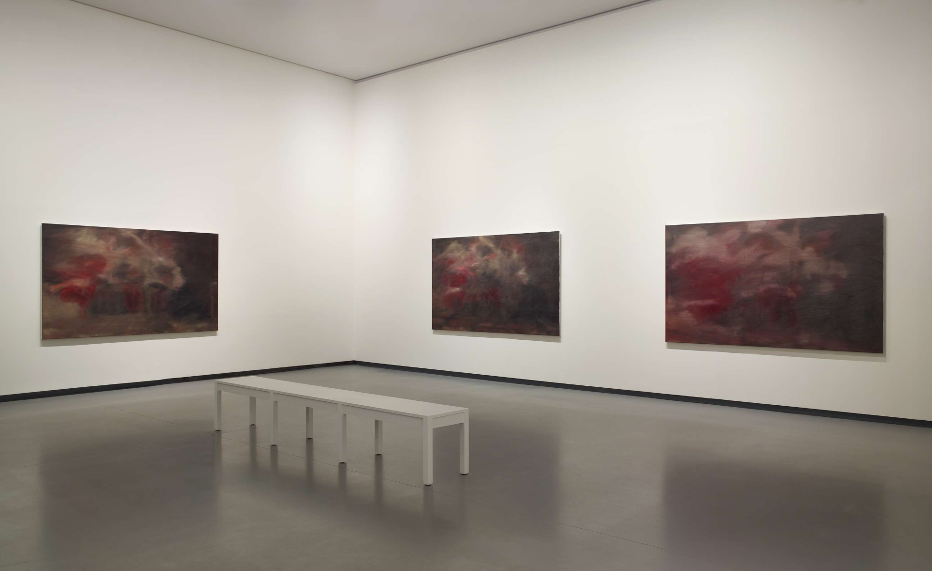 La spettacolare mobilitazione di mezzi, una costante della Fondation Louis Vuitton, si salda a un rigore scientifico che sempre più accidentalmente informa i grandi progetti espositivi dedicati alle star dell’arte contemporanea. Invece di essere isolati come icone, anche i capolavori più noti sono riportati al loro valore primo di opere in rapporto ad altre opere. È così che si accerta la medesima qualità concreta, autosufficiente delle pennellate dalle dominanti cromatiche e dei rialzi screziati di luce tra gli esiti più nebulosi dalla suggestiva Annonciation d’après Titien e coevi esemplari di Vermalungen, come Rot-Blau-Gelb (1973), dal ductus intricato e serpeggiante, in un momento in cui le mediazioni della realtà vengono evacuate per prendere a referente la sola gestualità pittorica.