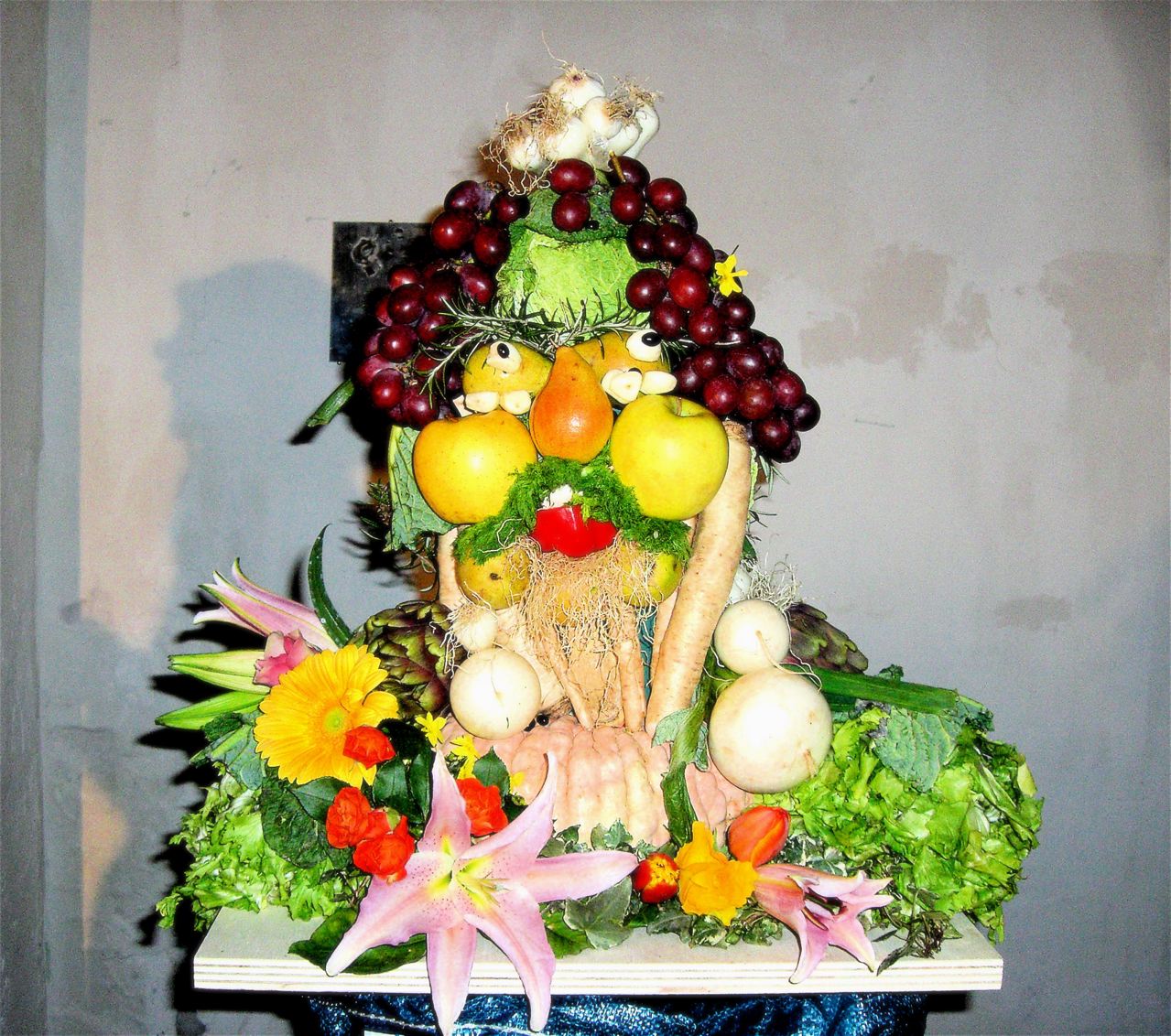 Girare, cambiare, mutare: tutto si trasforma. Cambiano le stagioni, si nasce cresce e muore. Circolare è la vita dell’uomo, piena di eterni ritorni. La Natura e il suo corso. Circolarità. La piccola mostra Vertumnus di Ettore Favini da Mars, tocca questi grandi temi. Giocoso l’atteggiamento dell’artista che, spiazzando tutti, costruisce una buffa imitazione del famoso quadro dell’Arcimboldo Vertunno (Ritratto di Rodolfo II), 1590. Mi raccontava l’artista che con il tempo, la frutta & verdura sarebbero marciti diventando compost (concime), che si sarebbe depositato in un sacchetto di plastica posto sotto l’accumulo di verzura.