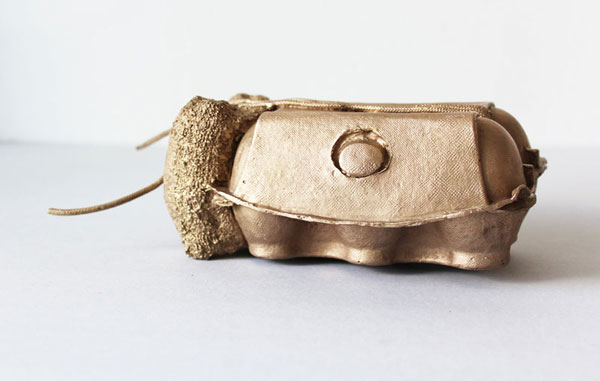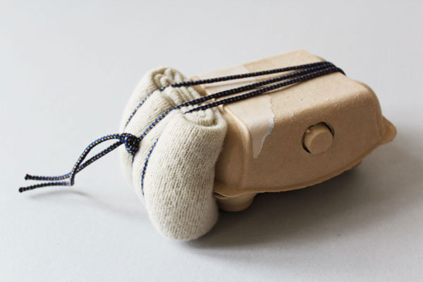 Deborah Ligorio, Survival Kit – Bellissima 1/99, 2012, assemblage: egg box, paper, woolen cloth, string, 19x12x9 cm.