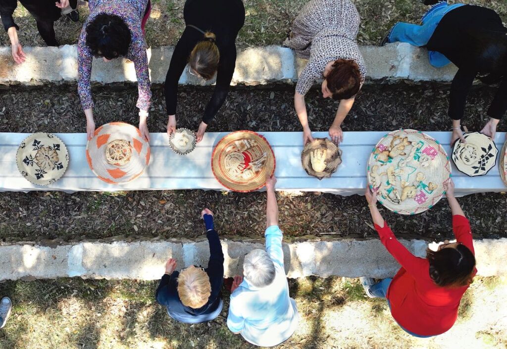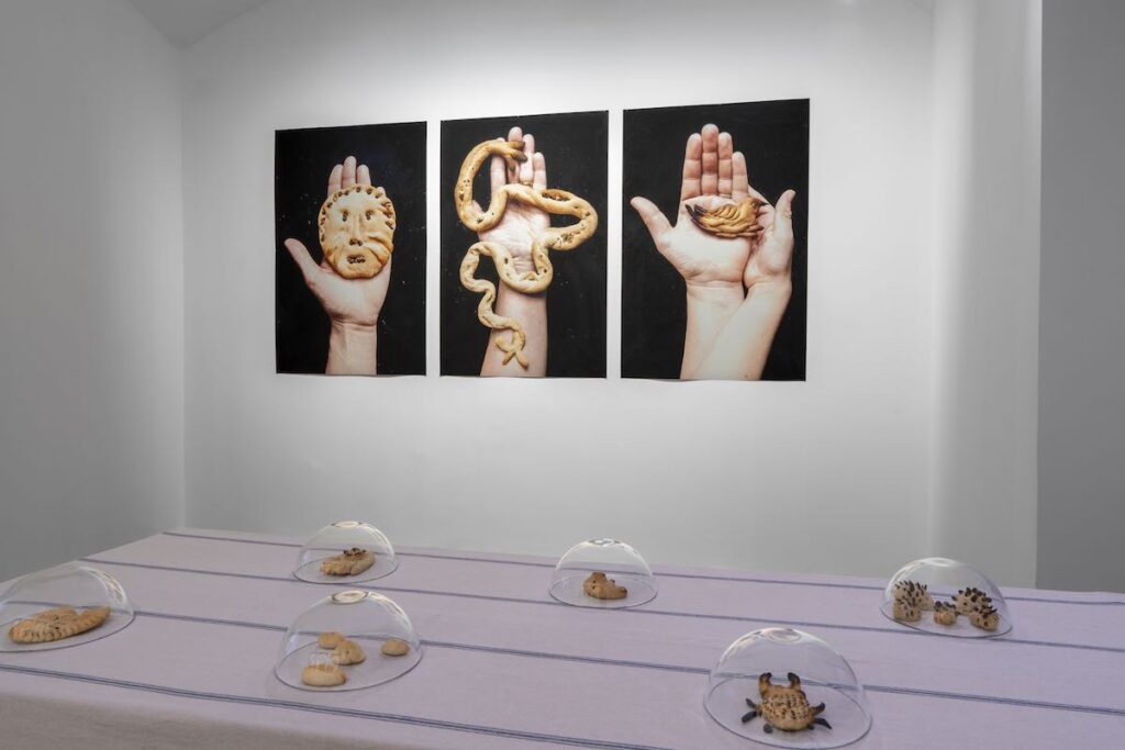 Il viaggio dei Pani del desiderio si estende poi in Italia, dal 2022, coinvolgendo città e borghi molto diversi tra loro: Milano, Fontecchio (AQ), Firenze, Castiglione delle Stiviere (MN), Ghesc (VB). Ogni volta il processo si riattiva in dialogo con contesti e comunità differenti, in collaborazione con musei, festival, associazioni locali. La logica non è quella dell’opera che si replica identica, ma di un rituale che si rigenera a ogni incontro. Nei laboratori, che Turba preferisce definire «momenti di vera e propria creazione collettiva» i partecipanti raccontano, ascoltano, immaginano. Ciascun pane diventa così il contenitore simbolico di un frammento di esperienza individuale che si intreccia con altre, fino a comporre un mosaico che nella sua forma si rende condiviso e collettivo. La mostra al MAN non espone semplicemente queste forme, ma prova a restituire il processo, le relazioni, i legami invisibili che li hanno resi possibili; diventando anch’essa una nuova occasione di relazione e interazione con gli spettatori. La dimensione partecipativa infatti non è accessoria, ma sostanziale: senza la presenza e il contributo delle persone, il progetto non avrebbe potuto esistere, in ogni sua tappa.