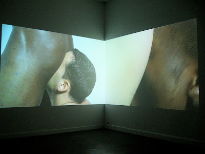 Entriamo nella seconda parte della mostra. Aprono le danze il tappeto di Marzia Migliora ‘Vado così forte in salita per abbreviare la mia agonia’, l’unicorno cromato di Piero Golia e le foto di Linda Fregni Nagler. Alle angosce di Marzia Migliora anche il secondo locale. Segue un’intera stanza dedicata a Patrizio di Massimo con il video culo nero-faccia bianca/culo bianco-faccia nera dal titolo esplicativo ‘Faccetta nera, faccetta bianca’. Pendant al video un testo che fa parte dell’opera ‘The Negrus Said: give me the lion, keep the stele!’, che parla di colonialismo, razzismo, immigrazione ecc.