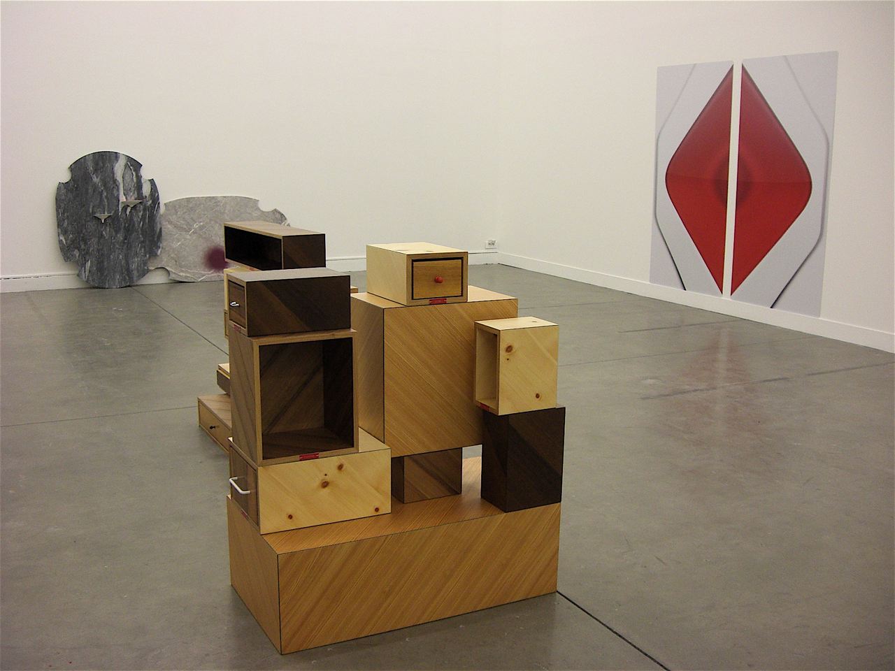 Elegante la stanza con dei lavori, quasi tutti a parete: la famosa opera della Pivi degli animali bianchi, le foto in bianco e nero di Renato Leotta, l’autoritratto tra un quadrato e un rettangolo di Francesco Gennari, le tenebrose foto di Marinella Senatore e le incisioni di vecchi paesaggi su carta di Salvatore Arancio. Nel corridoio una oramai classica installazione di Meris Angioletti che su delle piccole lastre riporta un testo di Kracauer su Edgar Allan Poe sovrapposto, dunque illeggibile.