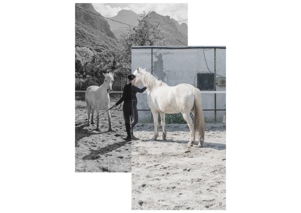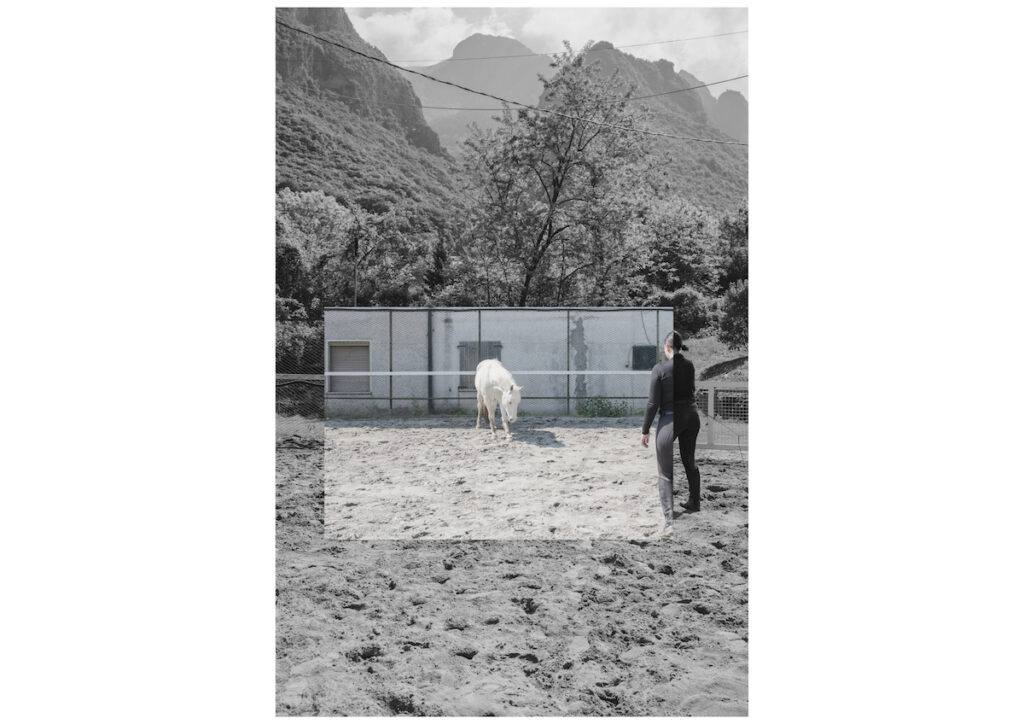 Rappresentazioni simboliche e storiche, fotografie e immagini d’archivio raccontano una narrazione costruita: un cavallo semplificato, glorificato, estetizzato, sempre subordinato allo sguardo umano. Da queste, si costruisce una sovrapposizione: una metamorfosi in cui la donna diventa cavallo e viceversa, nel tentativo di fondere due creature spesso vittime di quello stesso sguardo; tradizionale e maschile.