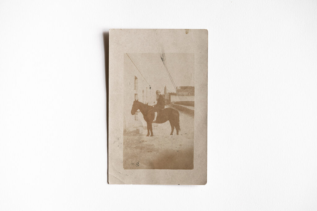 - Cartolina del 1927 di una donna a cavallo. ↩︎