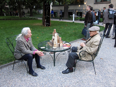 Luogo stupefacente per la mostra Low Dèco a cura di Alessandro Rabottini: Villa Necchi, gioiello architettonico del ‘900. Cinque gli artisti invitati a confrontarsi con questo ‘mostro sacro’ e intoccabile (non c’era nessuna opera all’interno se non la performance di Di Massimo). Prima opera, la più immateriale, Conversation Pieces di Meris Angioletti: un’opera sonora fruibile in cuffia che mi ha fatto immaginare quadri di Van Eyck e Rubens, ma anche Gruppo di famiglia in un interno di Visconti (ne consiglio la visione), in un accavallarsi di voci, situazioni, fonti letterarie e storiche. Surreale girovagare nel giardino delle Villa con un intarsio di racconti. Discrete ed eleganti le sculture in tubolare in ottone di Santo Tolone, che ha materializzato ombre in marmo e reso reali progetti per fontane mai realizzati da Portaluppi. Ho apprezzato meno gli intarsi di Riccardo Beretta Portoro. Penso che dipenda dal fatto che erano ‘attaccati’ al fusto degli alberi, per altro non avvicinabili (era proibito camminare sull’erbe). Il lavoro di Matteo Rubbi, L’Italia in cerchio, essendo un’opera da fruire giocando… non ho esattamente capito in cosa consiste. So, da comunicato, che ha coinvolto 17 amici, tra artisti e scrittori. L’opera forse più toccante ritengo sia quella di Patrizio Di Massimo, Fuga dal Disordine. Una performance appassionante, che mi ha fatto riflettere su un periodo, quello Fascista, da un punto di vista intimista e molto umano. L’attore professionista ha raccontato vicende e racconti di vita vissuta sovrapponendo vicende biografiche di personaggi come Margherita Sarfatti e Italo Balbo, legati al Fascismo e alla sua iniziale percezione come avanguardia politica che si è trasformata ben presto in regime totalitario. A chi non avesse ancora visto la mostra, consiglio di prenotare la visita guidata.