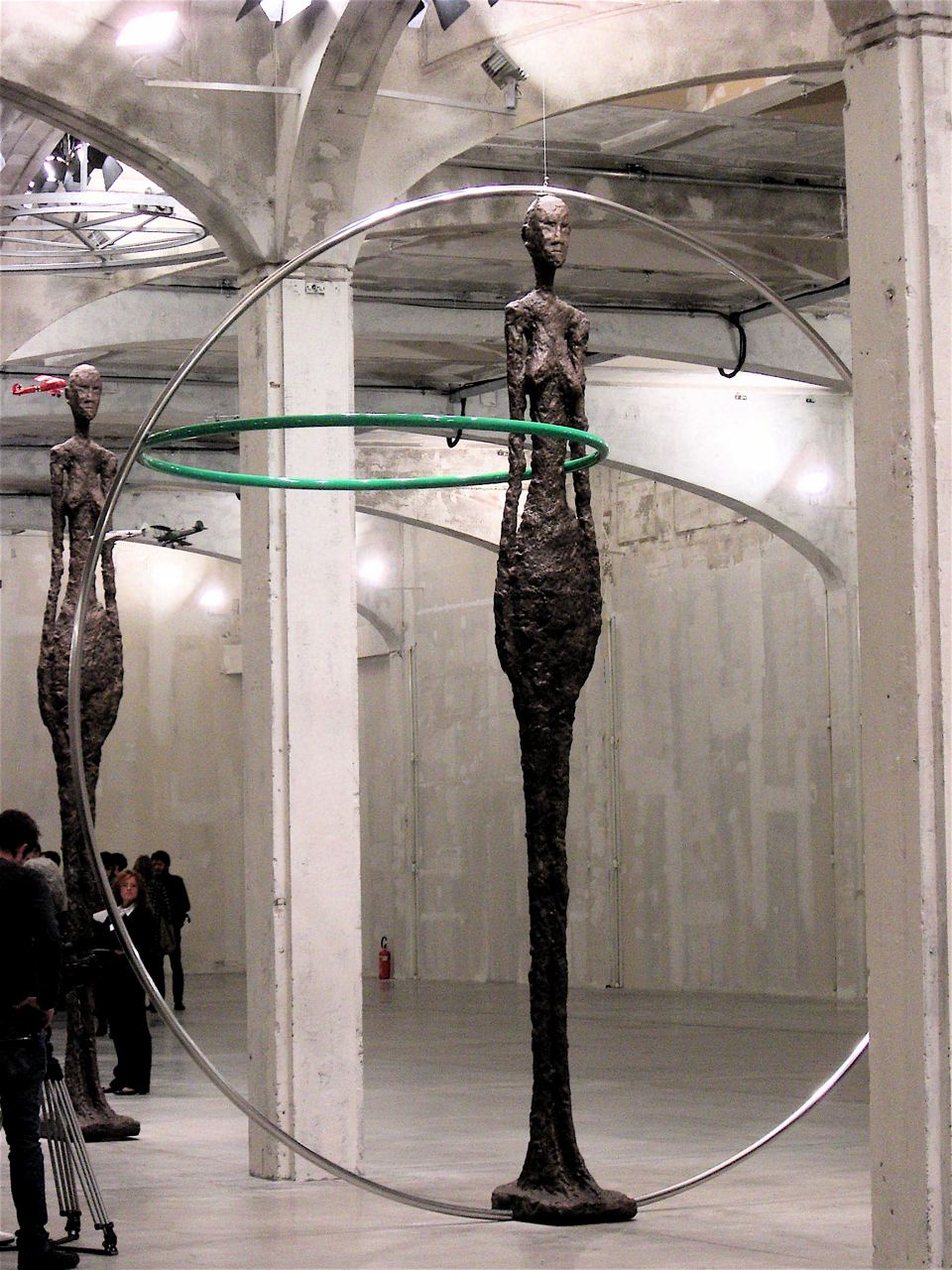 “Ho sempre voluto fare quadri e scultura alti. Sospetto perchè io sono piuttosto alto. Ho avuto poche opportunità poichè la maggior parte delle gallerie hanno i muri la cui altezza rispecchia quella dei muri nelle case dei collezionisti. Il mio progetto per la Fondazione, è di allungare le sculture in piedi di Giacometti e vestirle di abiti. Portare alla sua logica conclusione un’idea estrema già esistente è stato per me un metodo di lavoro. Le sculture di Giacometti sono le sculture più scarnificate ed emaciate che esistano. Perchè non spingersi ancora più in là? Oggi poi i confini tra arte e moda sono indefinibili. Inoltre è prassi, quasi di rigore, che le modelle sono altissime e magre. E’ parodia? Non ne sono certo. Detesto categorie e definizioni… Non è questo ciò che fanno gli artisti? L’arte non nasce dall’arte? Quello che sto facendo è approfondire un’idea – che è il requisito di ogni buona arte.”