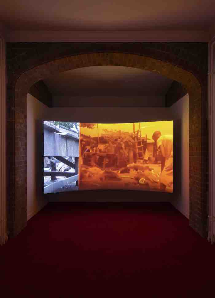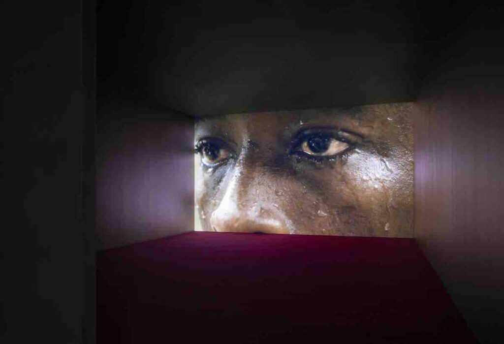 It is from this light, from this sanguine vibration, that Tendered, Karimah Ashadu’s solo exhibition at Camden Art Centre, begins. Like a long breath held and released, it settles on the walls, crosses the viewer’s skin. A light that does not show but becomes a substance of listening. A light that does not reveal but accompanies: it does not seek focus; it allows itself to be enveloped. The curatorship of Alessandro Rabottini and Leonardo Bigazzi — shaped within the vision of Fondazione In Between Art Film, which has long explored the porous threshold between cinema, installation and performance — guides the entire exhibition. Not as an external framework, but as an architecture of sensibility.”