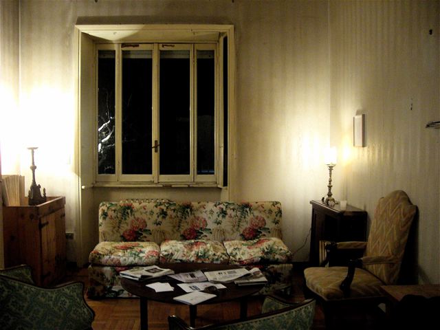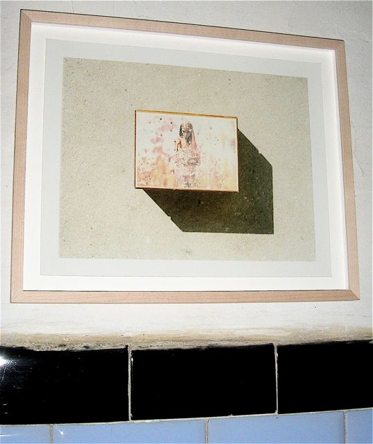 Lo Spazio Marris è talmente ‘caratterizzato’, ha un’atmosfera così decadente-chic (evito la ‘vecia Milan’ come riporta il CS), che è quasi inevitabile non scindere il contenuto dal contenitore. La carta da parati scrostata, la stanzetta con decide di cartoline da vacanze assolate, la luce fioca… insomma tutto si ammanta di incanto e bla bla.