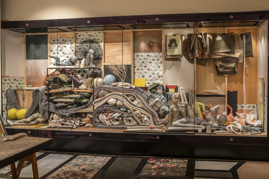 Nello studio, opere come Resistant Materials / Unstable Objects (Study) (2025) convivono con lavori precedenti dell’artista e con gli oggetti freudiani in un equilibrio fragile di superfici e consistenze. Gesso, legno, vetro, pelliccia: materiali che non competono per visibilità, ma che rendono percepibile il lavoro di mantenimento che tiene insieme le cose. Non c’è mimetismo né citazione, ma una frizione controllata che rende lo spazio leggermente instabile, come se l’ordine potesse sempre essere rinegoziato.