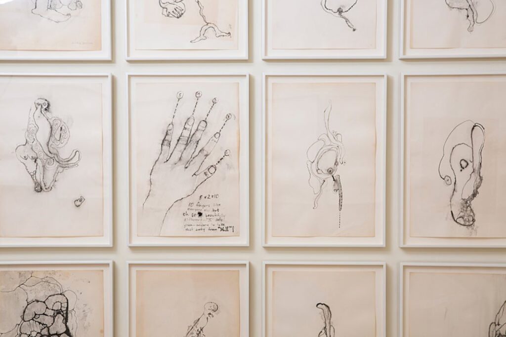 Progressivamente, l’attenzione si è spostata dal corpo intimo al corpo sottoposto a sistemi: osservato, registrato, trattenuto. Le stanze hanno iniziato a interrogare il confine sottile tra cura e controllo, tra protezione e sorveglianza, come se il lessico domestico contenesse già, in forma latente, quello dell’istituzione. Con Ida Applebroog. Mercy Hospital (2020), questo slittamento è diventato esplicito. Le stanze non si sono trasformate in una clinica: hanno rivelato che la clinica era già inscritta nello spazio domestico. Le figure, sospese tra umano e astratto, non abitano un luogo riconoscibile, ma un sistema di orientamenti contraddittori, dove il movimento sembra sempre sul punto di smarrirsi. Le frasi ricorrenti — “this way… no that way…” — non indicano una direzione, ma l’impossibilità stessa di orientarsi. Come nel racconto The Yellow Wallpaper (1892) di Charlotte Perkins Gilman, lo spazio della cura coincide con un dispositivo di reclusione psichica: l’ambiente domestico diventa un apparato che osserva, registra, trattiene. La visione non guarisce, ma resiste. La fragilità non è più una condizione privata, bensì una struttura che si rivela nella sua dimensione politica.