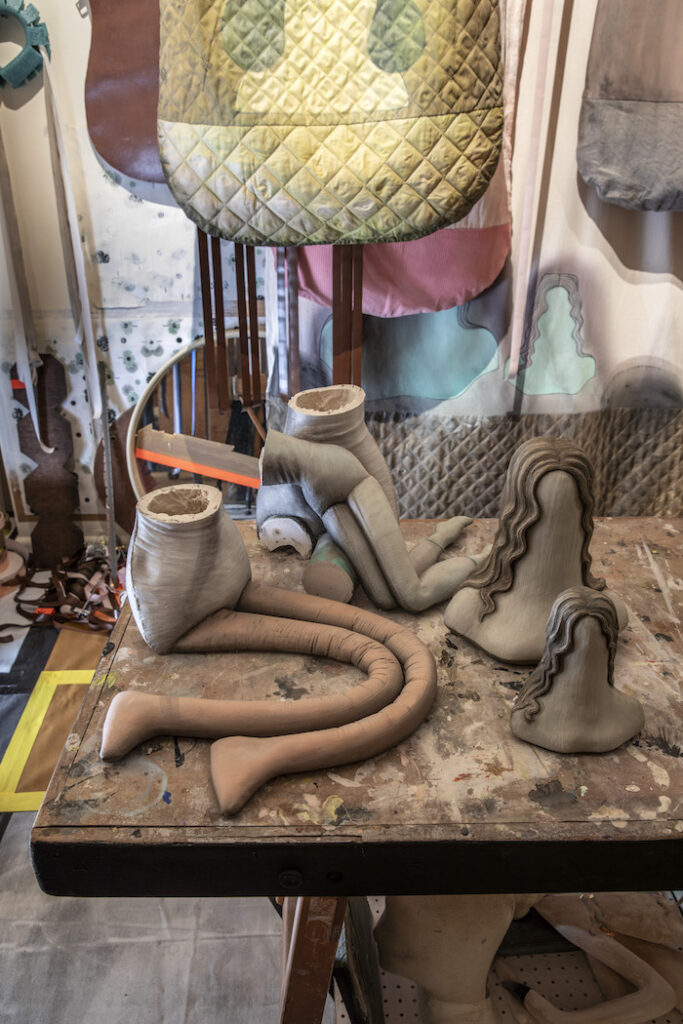 Nello studio, opere come Resistant Materials / Unstable Objects (Study) (2025) convivono con lavori precedenti dell’artista e con gli oggetti freudiani in un equilibrio fragile di superfici e consistenze. Gesso, legno, vetro, pelliccia: materiali che non competono per visibilità, ma che rendono percepibile il lavoro di mantenimento che tiene insieme le cose. Non c’è mimetismo né citazione, ma una frizione controllata che rende lo spazio leggermente instabile, come se l’ordine potesse sempre essere rinegoziato.