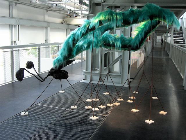 Nell’insieme ci sono opere che valgono la visita. Tra le tante, mi vien da dire, ci sono molti lavori che dimostrano, ancora una volta che l’artista rimane un ottimo artista. Su 80, un pò di nomi (alcuni diranno …’sempre gli stessi!’): Giuseppe Gabellone , per la fotografia della scala elissoidale del 1997, Gianni Caravaggio, per la lastra di marmo nera, Diego Perrone, per il suo grande insettone dalle piume verdi, Patrick Tuttofuoco, perchè gli diamo la possibilità di crescere ancora, Massimo Kaufmann, per la leggerezza delle sue meteoriti di malinconia, Vedovamazzei, per il tocco di poesia dell’uccellino conficcato con il becco sulla parete, Francesco Simenti, per gli aquiloni, Arcangelo Sassolino, per la grande tanica respirante, Adrian Paci, perchè sembra portare sulle spalle tutto il peso del mondo, Stefano Arienti, per i suoi grandi nidi di carta attorcigliata, Flavio Favelli, per la sua stanza inquietante, Massimo Bartolini, per il budda che gira su sé stesso, Alessandro Piangiamore, per la pietra dorata che non vedrà nessuno, Carla Mattii, per il suo giardinetto che ‘waiting for the rain’, Bruna Esposito, per il suo piombo super essenziale, Lara Favaretto, per il suo cubo di coriandoli, Maurizio Cattelan, non poteva non esserci, Pierluigi Calignano, e le sue porte decorate, Carlo Bernardini, per il ‘corpo organico di luce’, Riccardo Previdi, per i suoi multipli, Francesco Arena, per la testina di Lenin dentro alla fodera della giacca…