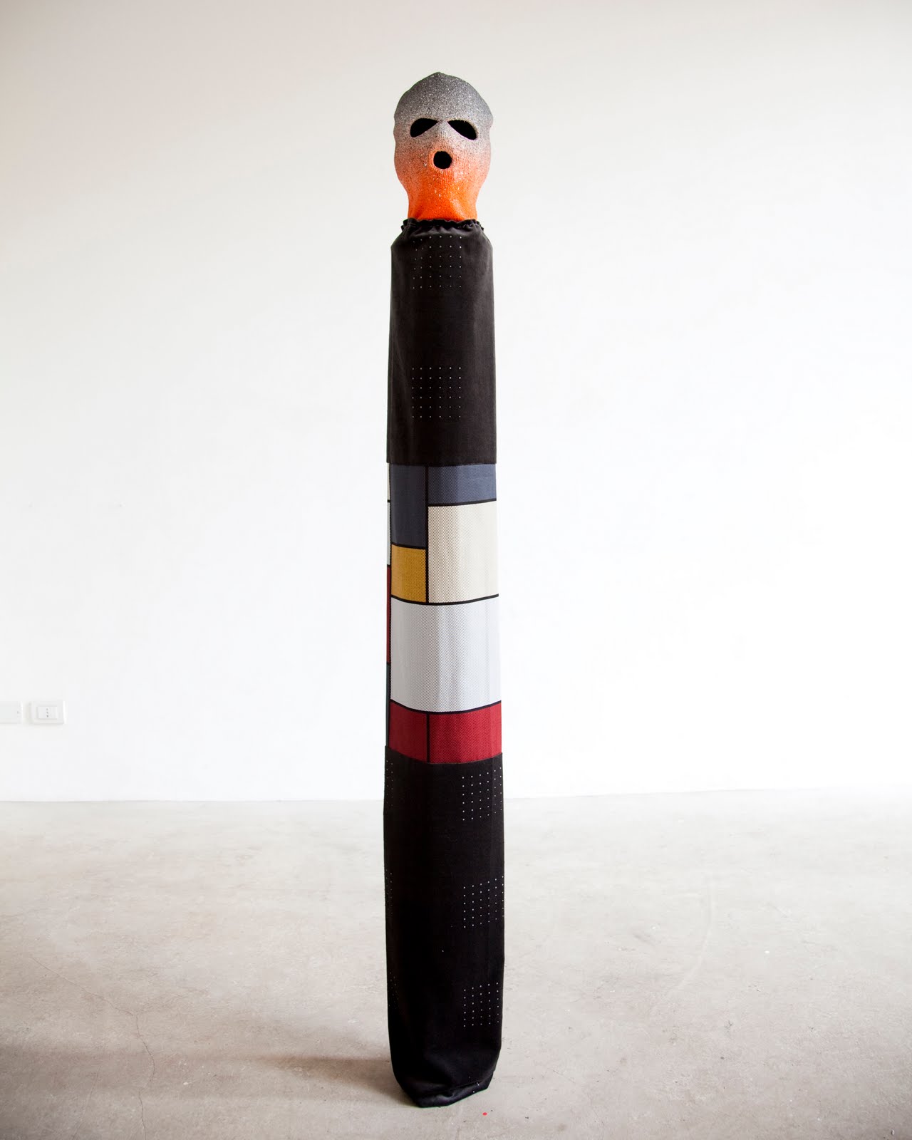Il percorso della mostra inizia con l’opera ‘Trefili’ di Stefano Arienti, una scultura semplicissima composta da giornali arrotolati e intrecciati che formano una lunga fune adagiata su se stessa. Ricorda vagamente le corde navali di barche e velieri; fa pendant ‘Honey I rearranged the collection…’ di Allen Ruppersberg. La mostra prosegue nell’altra stanza con ‘Senza Titolo’, l’affascinante scultura di Giovanni Kronenberg. L’opera consiste in un dente di narvalo, su cui l’artista ha fatto incidere un minuziosissimo autoritratto realizzato con una tecnica ottocentesca di incisione dell’avorio. A fianco l’installazione di Patrick Tuttofuoco, ‘Levi’, che segue le ultime ricerche dell’artista incentrate sulle maschere. A parte il grande quadro di Yasumasa Morimura, ‘An Inner Dialogue with Frida Kahlo (Gift 2), ‘ a far da padrona a questa collettiva, l’opera del quotatissimo Salvatore Scarpitta: ‘Incident at Castelli’. Grande artista americano, scomparso da pochi anni, che attende di essere adeguatamente celebrato.