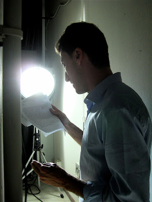 L’esperienza di girovagare in questo surreale set, fatto di oggetto per lo più costruiti dallo stesso artista, era abbastanza strana. Mi sono avvicinata alla fonte luminosa e mi sono accorta che dietro ad una parete c’era, indisturbato, un altro ragazzo (il filosofo Diego Donna) che leggeva o pensava a voce alta brani di filosofia. Dal comunicato stampa leggo che spaziava da elucubrazioni sul concetto di ostacolo fino a quello di epoca.