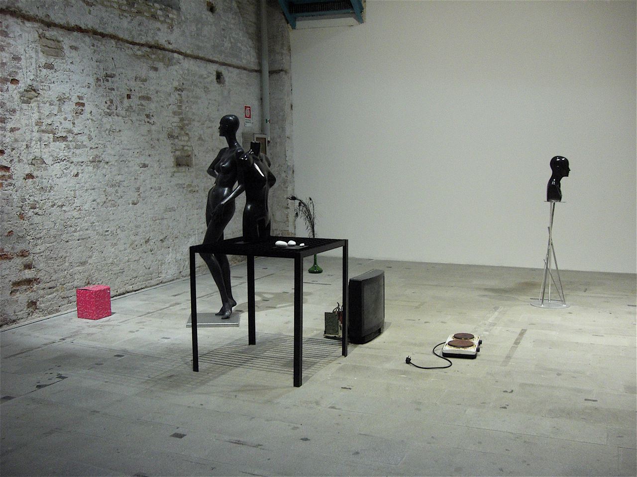 Mi guardo attorno e, come dicevo all’inizio, mi manca un pò l’affascinante prospettiva dell’Arsenale.. suddivisa dalla curatrice in tante piccole stanze. Finora niente di spettacolare o particolarmente ‘pungente’.. tutto scorre tranquillo, senza asperità… Altra personale, questa volta di Rebecca Warren che alle sculture sinuose-formose di donne, accosta installazioni astratte e minimali.