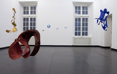Lo spazio principale della galleria è occupato da sculture sospese, in cartapesta colorata, le cui forme sono ispirate a grafici tridimensionali di funzioni matematiche e sulla cui superficie, non casualmente, è possibile ancora individuare le tracce dei testi e delle immagini che erano stampate sui fogli utilizzati per realizzarle.