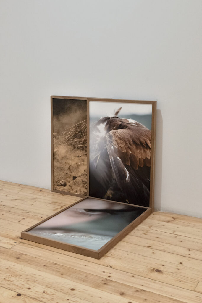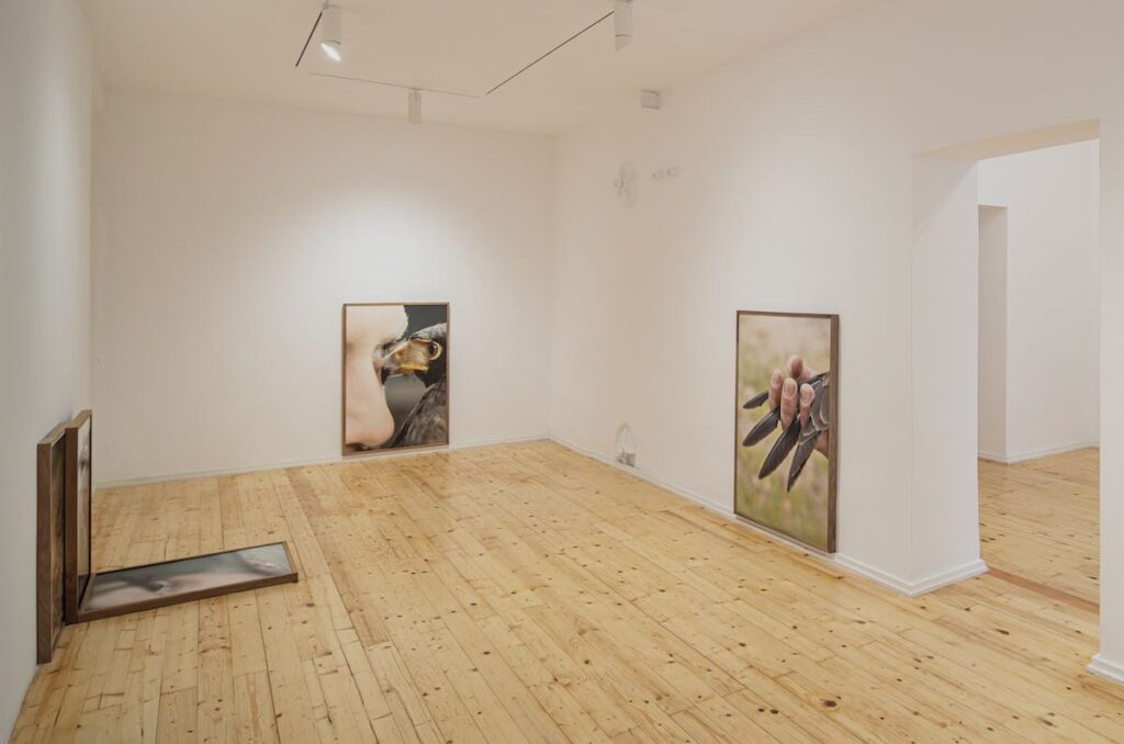 Porta avanti questo lavoro da più di sei anni. All’inizio non c’era la falconeria. C’era un falco. Lo vede nel 2018. Un momento complicato con il padre. Ogni volta che appare, è lui. Presenza intermittente. Distante. Carica. Nasce un diario. Date. Luoghi. Specie. Poi cambia. Scrittura ibrida. Un dispositivo. Parlare con una figura metà padre metà animale. Una lingua che esiste solo quando l’altro appare. Alcuni testi vengono incisi sul cuoio. Incidere per non dimenticare. O per non dover più dire. Poi la falconeria arriva davvero. Ma dopo. Come conseguenza. Per dare corpo alla metafora. Per attraversare altro: violenza psicologica, dinamiche familiari, stati di allerta che restano anche quando non servono più. La mostra sta lì. Tra protezione e controllo. Nel punto in cui la cura cambia forma. Every Caress, A Blow.