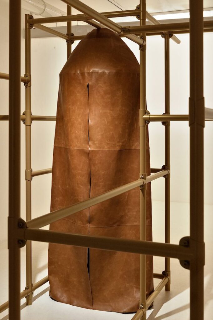 Verso la fine, una struttura in pelle. Un involucro. Buio. Non vedi. Tatto. Olfatto di cuoio. Suono. Due calamite. Si chiudono. Sei dentro. Nella corsa: venti secondi. Forse meno. Poi lei me lo racconta. E capisco che è l’opera che ho visto meno e immaginato di più. Capsula. Rifugio. Trappola. Le relazioni intime, a un certo punto, possono diventare uno spazio stretto, verticale. Non sai se sei al sicuro o se sei stata catturata. E a volte resti comunque. Uscendo non sono sicura di avere visto davvero la mostra. Poi al telefono, mentre Martina parla, le immagini tornano più precise di prima. Come se qualcuno le avesse rimesse al loro posto dentro di me.