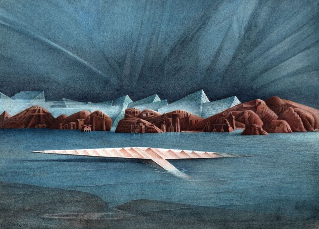 Ciò che viene messo in gioco non è il futuro dell’architettura, ma la sua condizione dopo la perdita di una promessa. Le immagini non progettano: registrano. Registrano la persistenza di archetipi che continuano a operare anche quando il contesto storico che li ha prodotti è venuto meno. La piramide, la torre, la fortezza, non sono citazioni: sono ritorni. Tornano perché non sono mai state davvero superate.