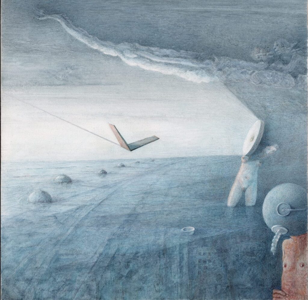 In questo senso, Solca mari mossi non è una mostra che si lascia attraversare rapidamente. Chiede una forma di attenzione che oggi è rara: un’attenzione non orientata alla comprensione immediata, ma alla permanenza dell’enigma. Le immagini non chiedono di essere interpretate, ma abitate. Non spiegano: tengono aperta una domanda su ciò che significa ancora disegnare, immaginare, costruire dopo la fine delle grandi sintesi. Il mare che queste opere solcano non trattiene il passaggio. Non restituisce segni, non offre orientamento. È un mare già attraversato, già segnato, già mosso da correnti che non si controllano. Solcarlo significa accettare che la traccia si perda, che la forma non si stabilizzi, che il pensiero resti esposto. È in questa tenuta, rigorosa e senza compiacimenti, che il lavoro di Massimo Scolari continua a parlare al presente.