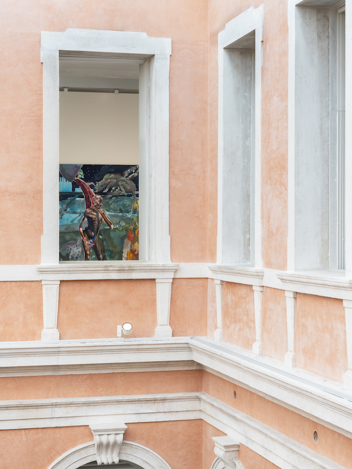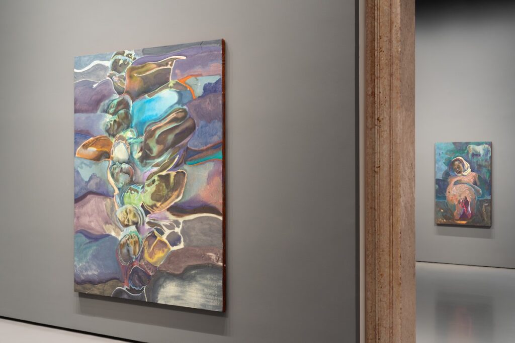 I piani espositivi di Palazzo Grassi sono quasi interamente dedicati alla copiosa produzione dell’artista anglo-kenyota Michael Armitage —con oltre centocinquanta opere, mentre l’artista indiano Amar Kanwar interviene in una intensa parentesi finale della mostra, con narrazioni audio-visuali immersive e frammentarie