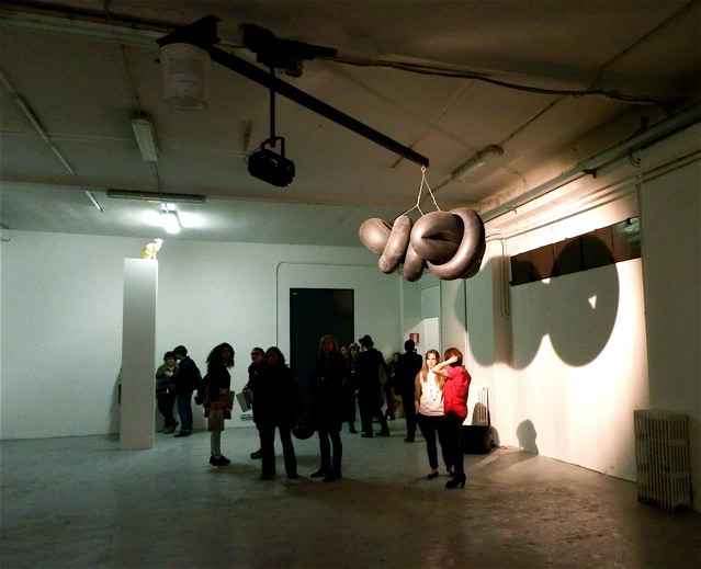 La mostra Solarkatze di Michael Sailstorfer alla Galleria Zero… è proprio bella. Mi piace perchè non ha bisogno di spiegazioni, perchè è coinvolgente, imprevedibile, giocosa senza essere banale. Le sculture dell’artista coinvolgono per la loro semplice e grezza bellezza: dei copertoni che girano furiosi, l’odore acre della gomma bruciata, esplosioni, rumori assordanti. Alberi che scoppiano, lanci violenti, spostamenti o piegamenti di pesanti lamiere. Unendo la forza della natura e il suo essere ‘una forza della natura’ l’artista attrae sempre l’interesse dello spettatore, spesso appiattito e insensibile (assuefatto da manierismi sterili e scopiazzature inutili). Sailstorfer decide invece di raccontare delle storie semplici e molto aperte a complesse o altrettanto semplici interpretazioni. Con ironia e un pizzico di sadismo (pensiamo al povero gattino costretto fino all’eternità a starsene immobile a rimirare il soffitto), l’artista inscena brani di straordinaria realtà. Una nuvola fatta di copertoni – minacciosa, sporca e nera – segue in circolo un ipotetico sfigato spettatore (magari un pò fantozziano) che si domanda da dove arrivi l’assordante rumore di fondo.