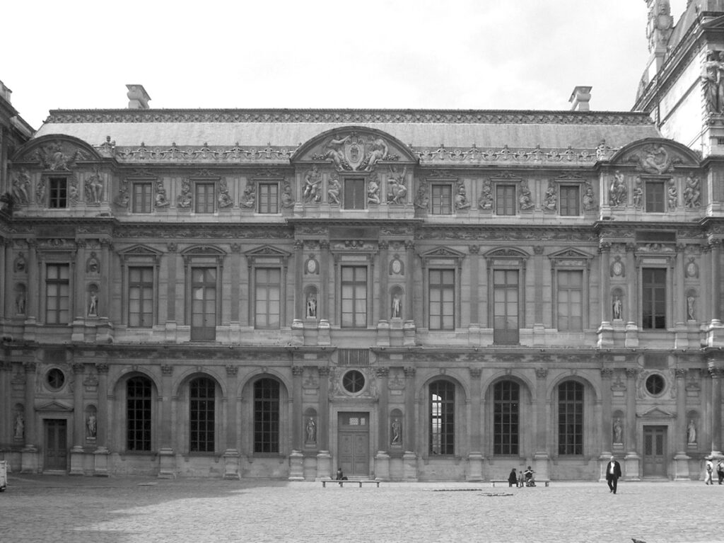 Before it became a museum, the Louvre was a fortress: a stone citadel built by Philip II of France in 1190 to protect Paris from northern invasions. Of that military origin, the moat remains, preserved in the underground galleries like an archaic echo that still underpins the entire structure. In the centuries that followed, the fortress became a royal residence, then a Renaissance palace, and later a Baroque court. Each dynasty altered its face, adding courtyards, wings, colonnades, galleries: a body in expansion that never ceased to transform. The Louvre is an architectural chronicle of power and desire, a masonry atlas upon which France inscribed its own idea of history.