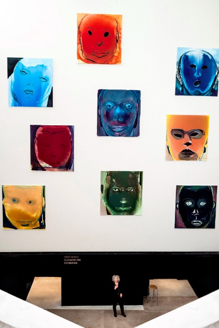 I volti non sono ritratti. Sono apparizioni. L’artista stessa ammette di non sapere pienamente da dove provengano: sono frammenti di immagini viste, di memorie sedimentate, di ombre del presente. Non nascono da un unico luogo, ma da un intreccio di passato e attualità. In essi si avverte l’eco dei genocidi contemporanei, pur senza rappresentarli; si riconosce l’anonimato dei fuggitivi, dei marginalizzati, di coloro che vengono stigmatizzati come stranieri. Non sono eroi, né vittime esemplari. Sono figure dell’inconscio collettivo, attraversate da una temperatura cromatica che sembra provenire dai quattro elementi – terra, acqua, aria, fuoco. La pittura, per Dumas, non è mai preparazione o disegno preliminare: è fusione. Ogni tela nasce dal versamento di un colore diluito, da una colata che l’artista inclina e guida come un partner di danza in un gioco di caso e controllo. La superficie si comporta come pelle; le macchie restano irregolari; il volto emerge come evento. Questa fisicità non è tecnica, ma ontologica. Dipingere significa esorcizzare la paura, lottare tra libertà e destino. L’artista ha parlato del proprio lavoro come di una preghiera per ottenere protezione. In questo senso, Liaisons non è soltanto un ciclo di immagini, ma un rituale di attraversamento.