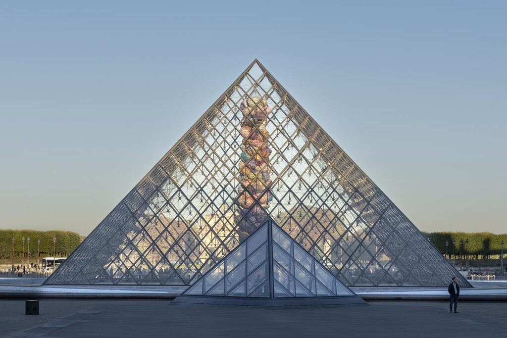 Nella Cour Puget, Jean-Michel Othoniel ha collocato La Rose du Louvre (2019), un fiore di vetro e luce che sembra nascere dal cuore minerale del museo. Il suo gesto non impone, ma traduce: il vetro rifrange la luce del giorno come un respiro che attraversa le epoche. Il Louvre, che per secoli ha custodito la solidità della forma, lascia entrare il tremore, il riflesso, la possibilità che la bellezza si manifesti come trasparenza. In quel dialogo tra materia e luminosità, tra peso e leggerezza, il tempo trova una nuova misura: non l’eternità immobile delle statue, ma una durata percettiva che si rinnova a ogni sguardo.