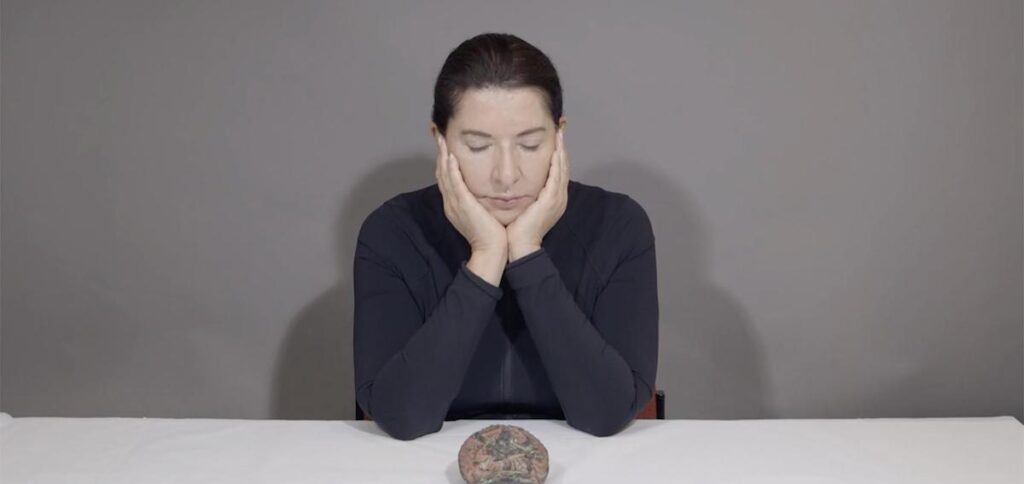 In un museo nato per ordinare le forme secondo funzione, Abramović introduce un altro criterio: l’energia. Non la tipologia, ma l’aura. Non la sequenza, ma la vibrazione. Si avvicina a oggetti legati a stati di trasformazione — strumenti magici, artefatti rituali, soglie simboliche — e li tratta non come campioni, ma come presenze. Le mani sospese sopra di essi, talvolta senza toccarli, come a trattenere un vuoto pieno, fanno emergere ciò che la teca non può contenere.