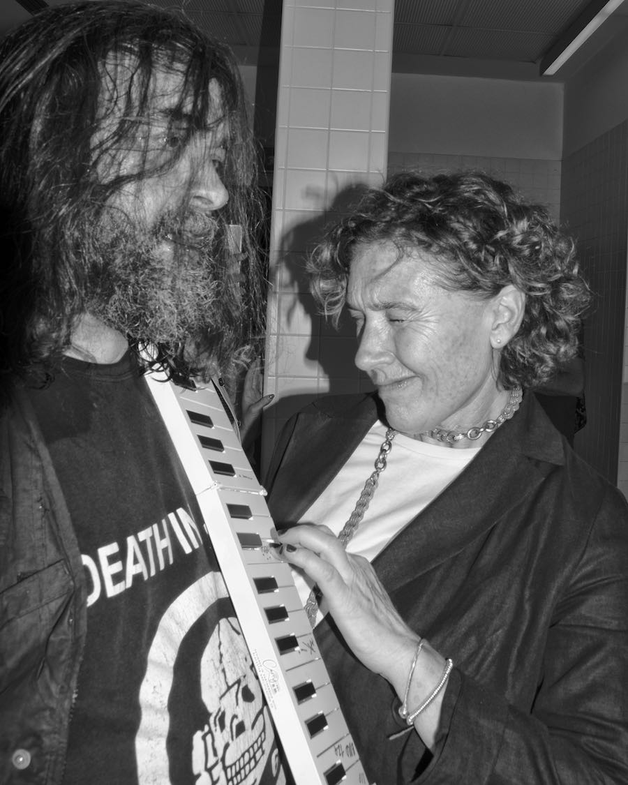In questo sistema semichiuso, caratterizzato da un flusso osmotico con l’esterno (l’andirivieni dei curiosi e degli utilizzatori dei servizi igienici), un numero relativamente limitato di particelle di base (l’artista, la strumentazione, il pubblico) si eccitava in mille permutazioni reciproche, nel tentativo di esplorare per gioco ogni combinazione possibile: la tastiera veniva premuta addosso a chi capitava vicino all’artista, registrando l’impronta sonora della sua corporeità, oppure era pestata da Benassi con i piedi nudi e con le ginocchia; il sintetizzatore era a disposizione di chi volesse cimentarsi, rapito dal verde neon dell’input del touchpad, nel tracciamento di pattern visivo-uditivi; gli asciugamani a getto d’aria, talvolta usati dall’artista per darsi ristoro dal caldo asfissiante, si rivelavano nuovi strumenti di produzione sonora e così il microfono ne catturava il rumore di ventole.
