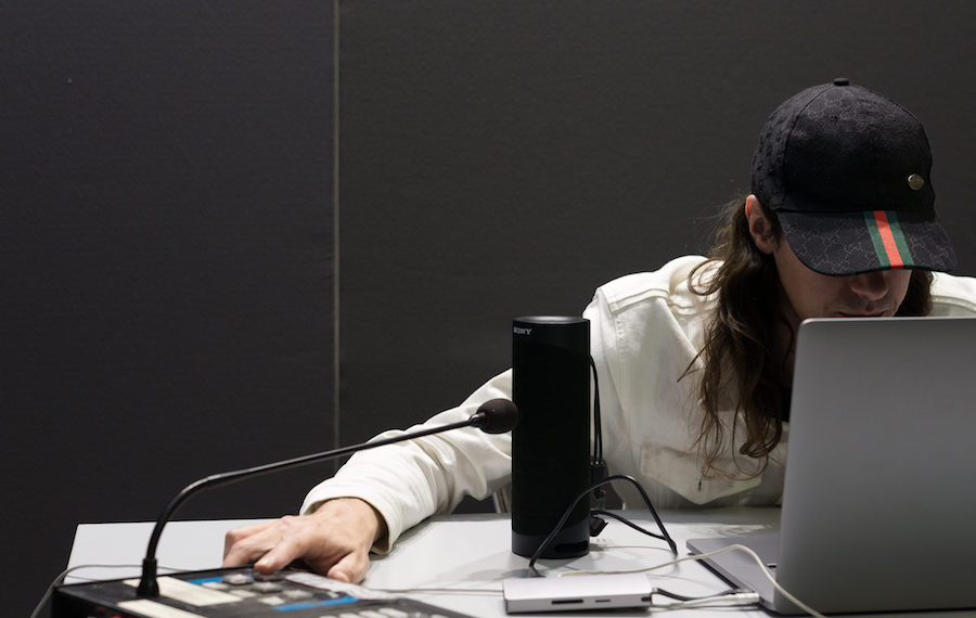 Il duo Invernomuto, formato da Simone Bertuzzi (Piacenza, 1983) e Simone Trabucchi (Piacenza, 1982), ha messo in scena l’intervento VERNASCACADABRA: l’impianto amplifonico del Padiglione 15 ha diffuso a cadenza regolare, per tutta la durata della fiera, una serie di composizioni originali per ocarina, strumento che si ritiene sia stato inventato da un artigiano di Budrio (BO) intorno alla metà del XIX secolo, per poi diffondersi in tutto il mondo. Il radicamento della storia dello strumento nel territorio bolognese rimanda all’interesse di Invernomuto per le pratiche vernacolari e le culture orali, rielaborate nella propria ricerca espressiva attraverso le lenti di una contemporaneità ibridata, in cui linguaggi analogici e digitali si contaminano vicendevolmente. Il suono senza tempo dell’ocarina, già risemantizzato e reso pop dalle iconiche colonne sonore di Ennio Morricone, dalle canzoni dei Duran Duran e dal seminale videogioco The Legend of Zelda: Ocarina of Time, è stato post-prodotto e offerto all’ascolto degli avventori della fiera tramite un impianto concepito per scopi esclusivamente informativi, eppure riadattato per tre giorni in medium artistico.
